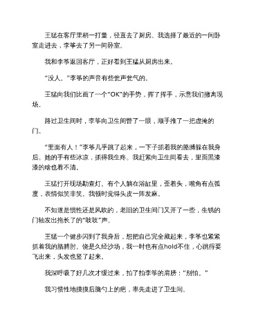 后。她的手有些冰凉,抓得我生疼。我赶紧向卫生间看去,里面黑漆