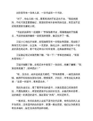 我把头凑过去,看了看李筝说的遗书,大致意思是已经身患癌