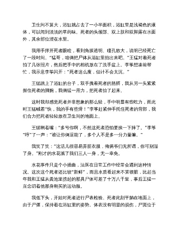 了一段时间。“猛哥,咱俩把尸体从浴缸里抬出来吧。”王猛对着死者