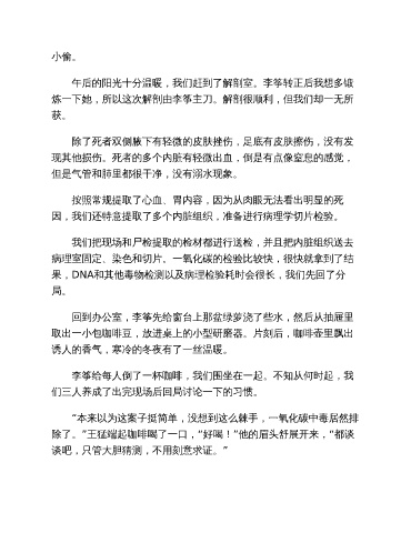 炼一下她,所以这次解剖由李筝主刀。解剖很顺利,但我们却一无所