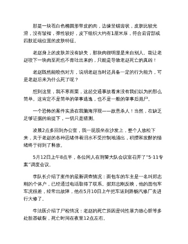 赵咬下一块肉至死也不肯吐出来的,只能是导致老赵死亡的真凶!