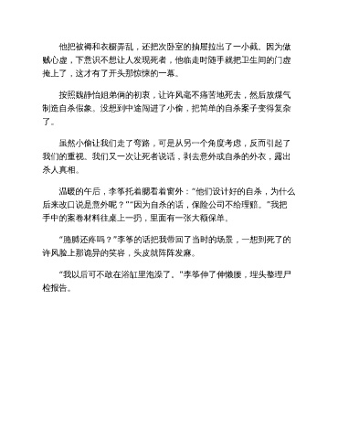我们的重视。我们又一次让死者说话,剥去意外或自杀的外衣,露出