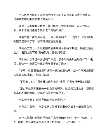 牛法医特别提到了老赵写的那个“口”字以及老赵口中的那块肉,