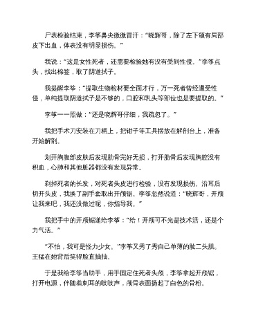 我说:“这是女性死者,还需要检验她有没有受到性侵。”李筝点