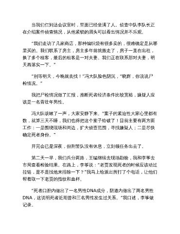 我把尸检情况做了汇报,推断死者经济条件比较宽裕,嫌疑人应