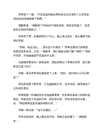 我解释道:“接吻留下DNA的可能性很低,除非是咬破了。还是