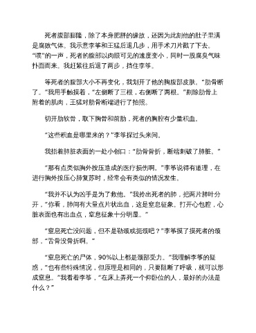 等死者的腹部大小不再变化,我划开了他的胸腹部皮肤。“肋骨断