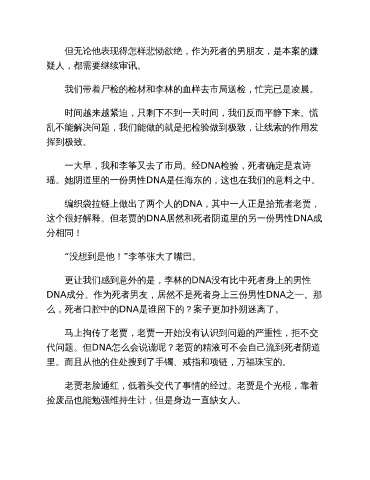 代问题。但DNA怎么会说谎呢?老贾的精液可不会自己流到死者阴道