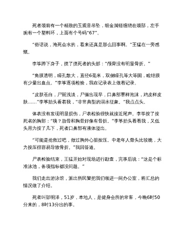 肤……”李筝抬头看着我,“非常典型的溺水征象。”我点点头。