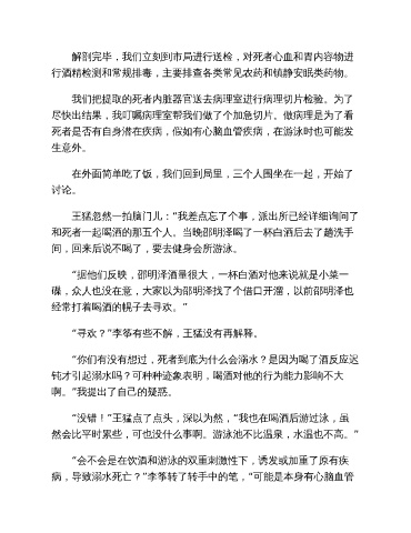 “会不会是在饮酒和游泳的双重刺激性下,诱发或加重了原有疾