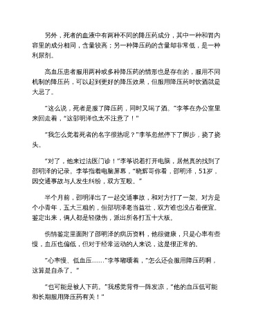 “这么说,死者是服了降压药,同时又喝了酒。”李筝在办公室里