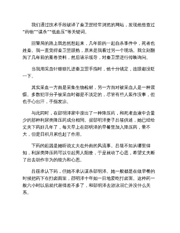 “药物”“谋杀”“低血压”等关键词。