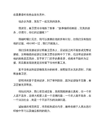 邵明泽的妻子坚持起诉,到了审判阶段,因为证据链不完善,秦