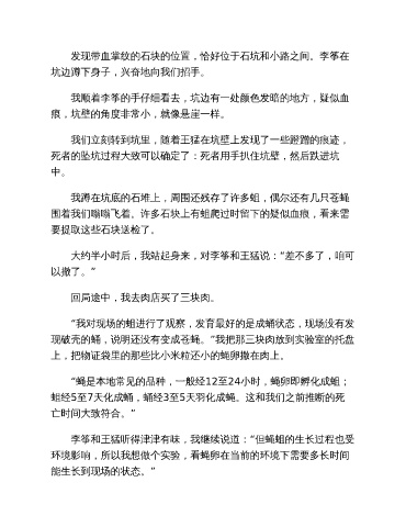 发现带血掌纹的石块的位置,恰好位于石坑和小路之间。李筝在