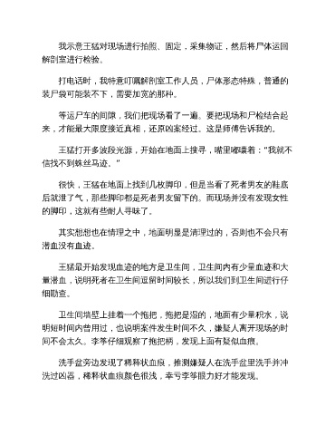 我示意王猛对现场进行拍照、固定,采集物证,然后将尸体运回