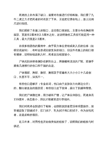 死者的上衣布满了破口,需要对衣服进行仔细检验。我们费了九