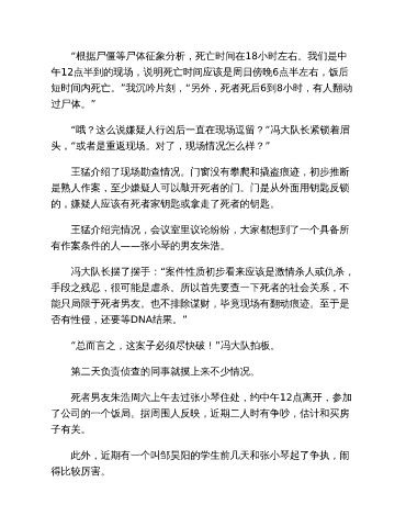 “根据尸僵等尸体征象分析,死亡时间在18小时左右。我们是中