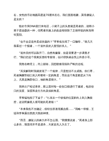 “而且,嫌疑人的体力并不怎么强。”我慢慢说道,“死者身上那
