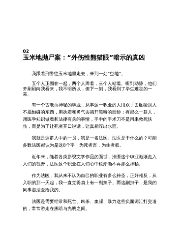 近年来,随着各类影视文学作品的面世,法医这个职业渐渐走入