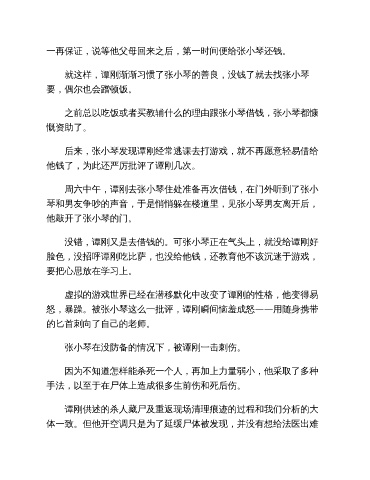 后来,张小琴发现谭刚经常逃课去打游戏,就不再愿意轻易借给