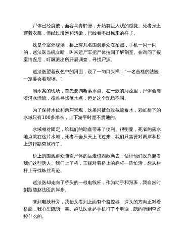 赵法医望着夜色中的河面,说了一句口头禅:“一名合格的法医,