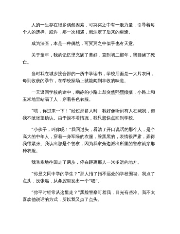 成为法医,本是一种偶然,可冥冥之中似乎也有天意。