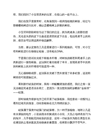 小宝塔和那段树枝引起了我们的注意,因为死者身上的那些损
