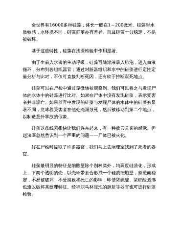体的水体中的硅藻进行比对。如果在尸体中没有发现硅藻,表示受害