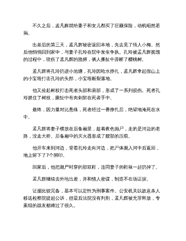 不久之后,孟凡辉就给妻子和女儿都买了巨额保险,动机昭然若