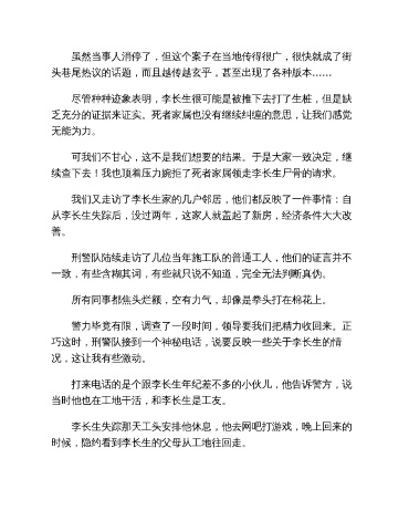 乏充分的证据来证实。死者家属也没有继续纠缠的意思,让我们感觉