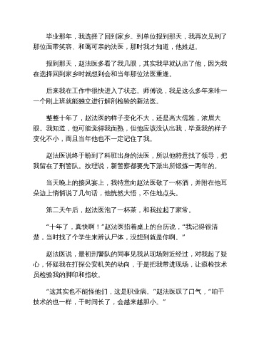 赵法医说终于盼到了科班出身的法医,所以他特意找了领导,把