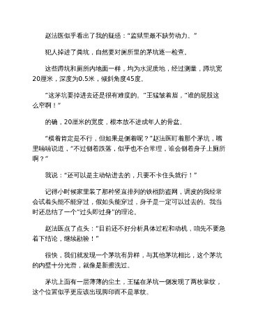 “横着肯定是不行,但如果是侧着呢?”赵法医盯着那个茅坑,嘴