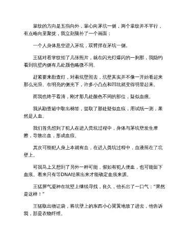 我们首先想到了犯人在进入粪坑过程中,身体与茅坑壁发生摩