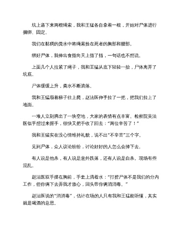上面几个人拉紧了绳子,我和王猛从底下轻轻一抬,尸体离开了
