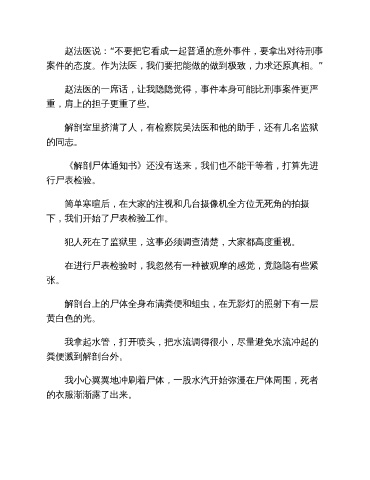 解剖室里挤满了人,有检察院吴法医和他的助手,还有几名监狱