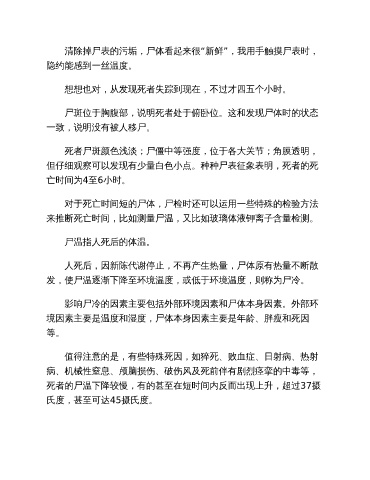 发,使尸温逐渐下降至环境温度,或低于环境温度,则称为尸冷。
