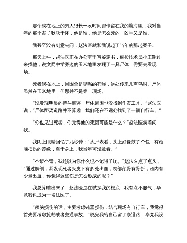 那天上午,赵法医正在办公室里写鉴定书,痕检技术员小王跑过