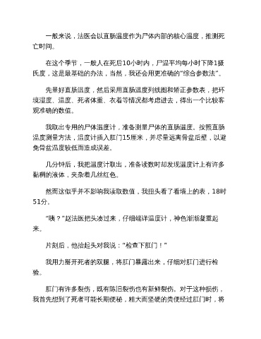 我取出专用的尸体温度计,准备测量尸体的直肠温度。按照直肠
