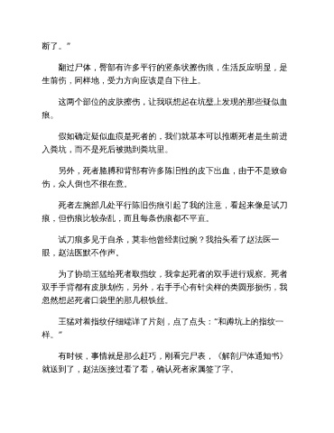 死者左腕部几处平行陈旧伤痕引起了我的注意,看起来像是试刀