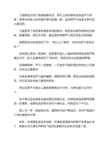 留,而茅坑内壁上的衣服纤维与囚服一致,这说明尹川就是从茅坑进
