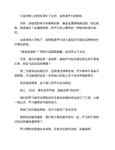 王猛对锁上的指纹进行了比对,是死者尹川的指纹。