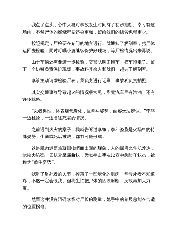 “死者男性,体表烧焦炭化,呈拳斗姿势,面容无法辨认。”李筝