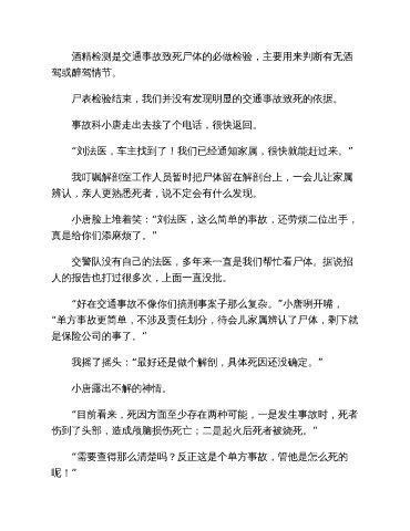 尸表检验结束,我们并没有发现明显的交通事故致死的依据。