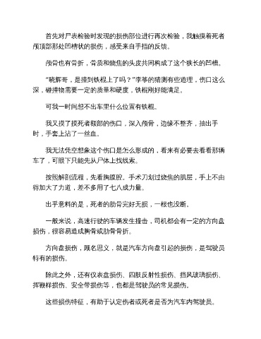 首先对尸表检验时发现的损伤部位进行再次检验,我触摸着死者