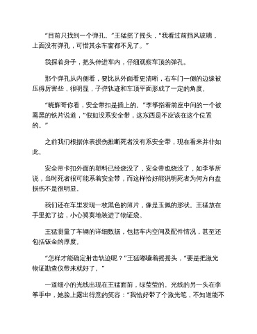 “目前只找到一个弹孔。”王猛摇了摇头,“我看过前挡风玻璃,