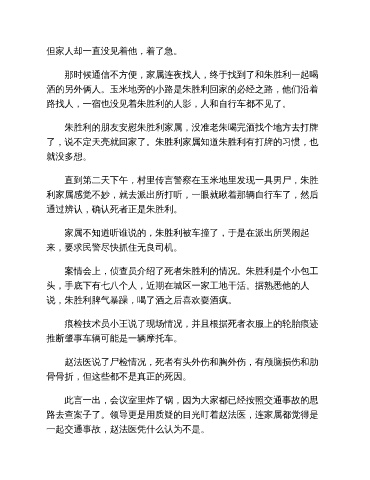 直到第二天下午,村里传言警察在玉米地里发现一具男尸,朱胜