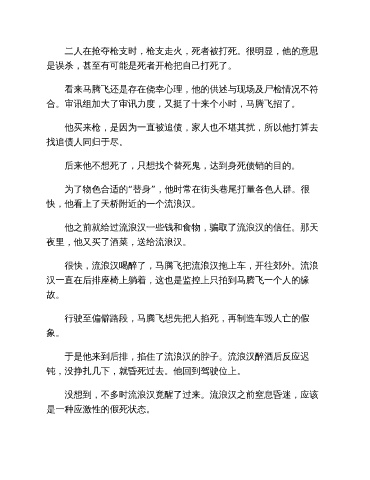 看来马腾飞还是存在侥幸心理,他的供述与现场及尸检情况不符
