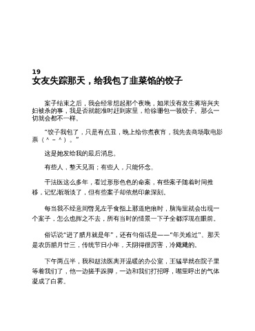 妇被杀的事,我是否就能准时赶到家里,给徐珊包一顿饺子。那么一