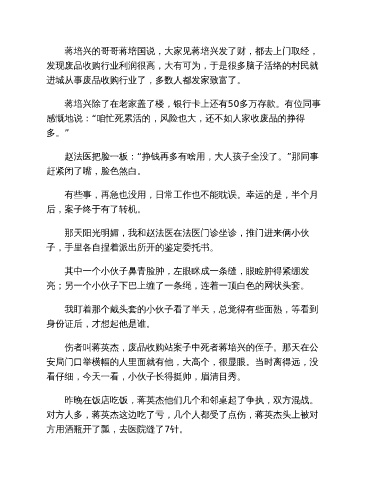 伤者叫蒋英杰,废品收购站案子中死者蒋培兴的侄子。那天在公