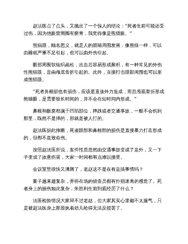 法医检验情况大家辩不过老赵,但大家其实心里都不太服气,只